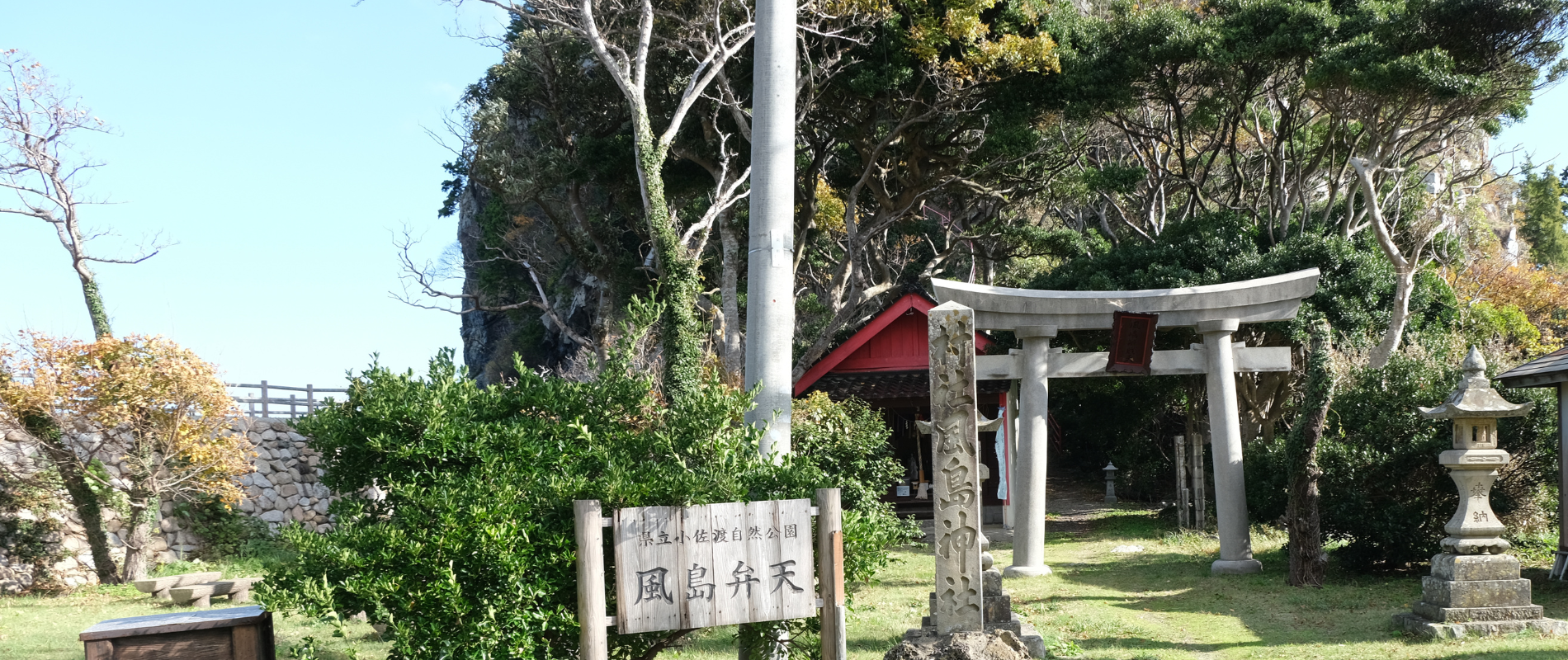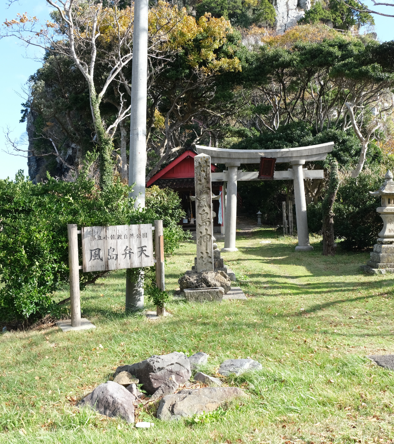 その岩上に、静かに鎮座する小さな神社が 風島神社 です。
